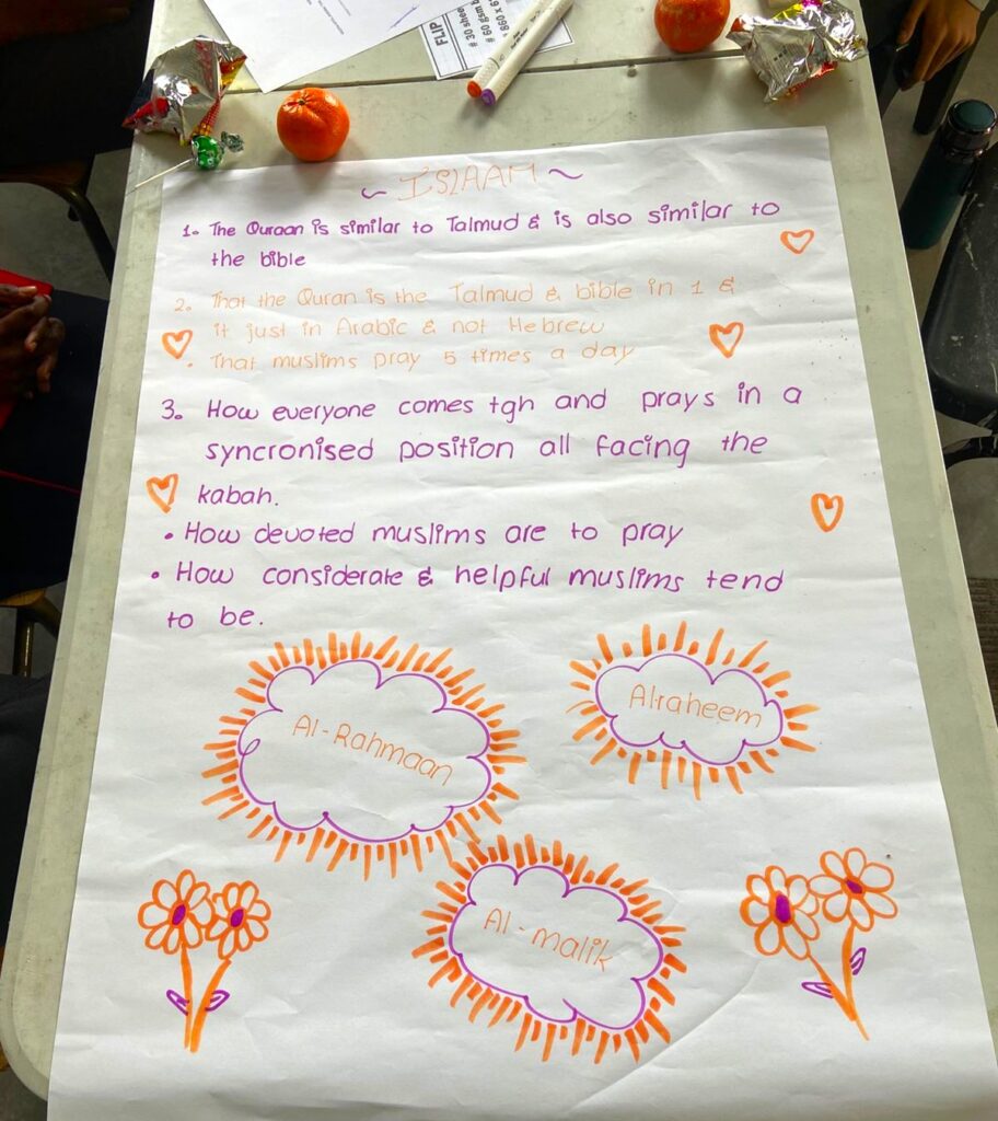 The learners really engaged well and learnt a lot. They appreciated the Imam at the end of the session and strongly appreciated his will to answer all their questions. The Imam showed so much interest and engaged with the students which in all made the session a great success not forgetting the help of the teachers and facilitators.