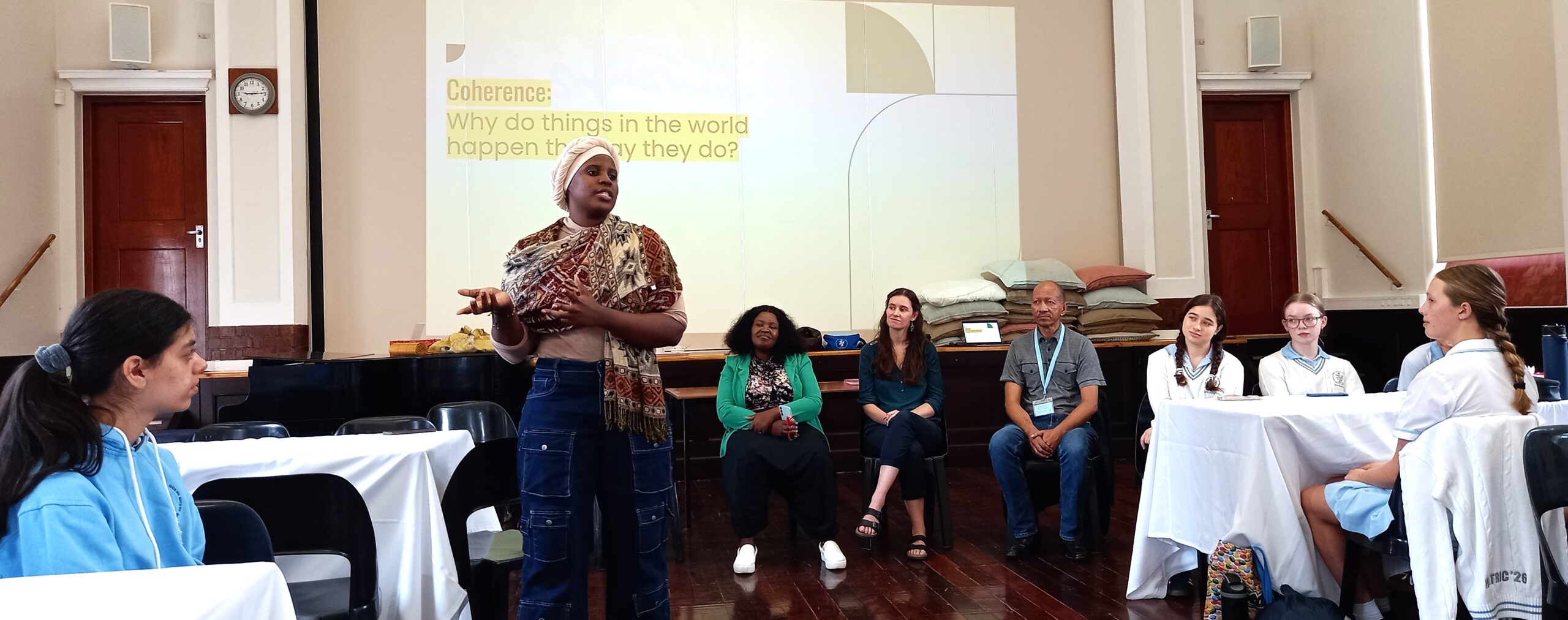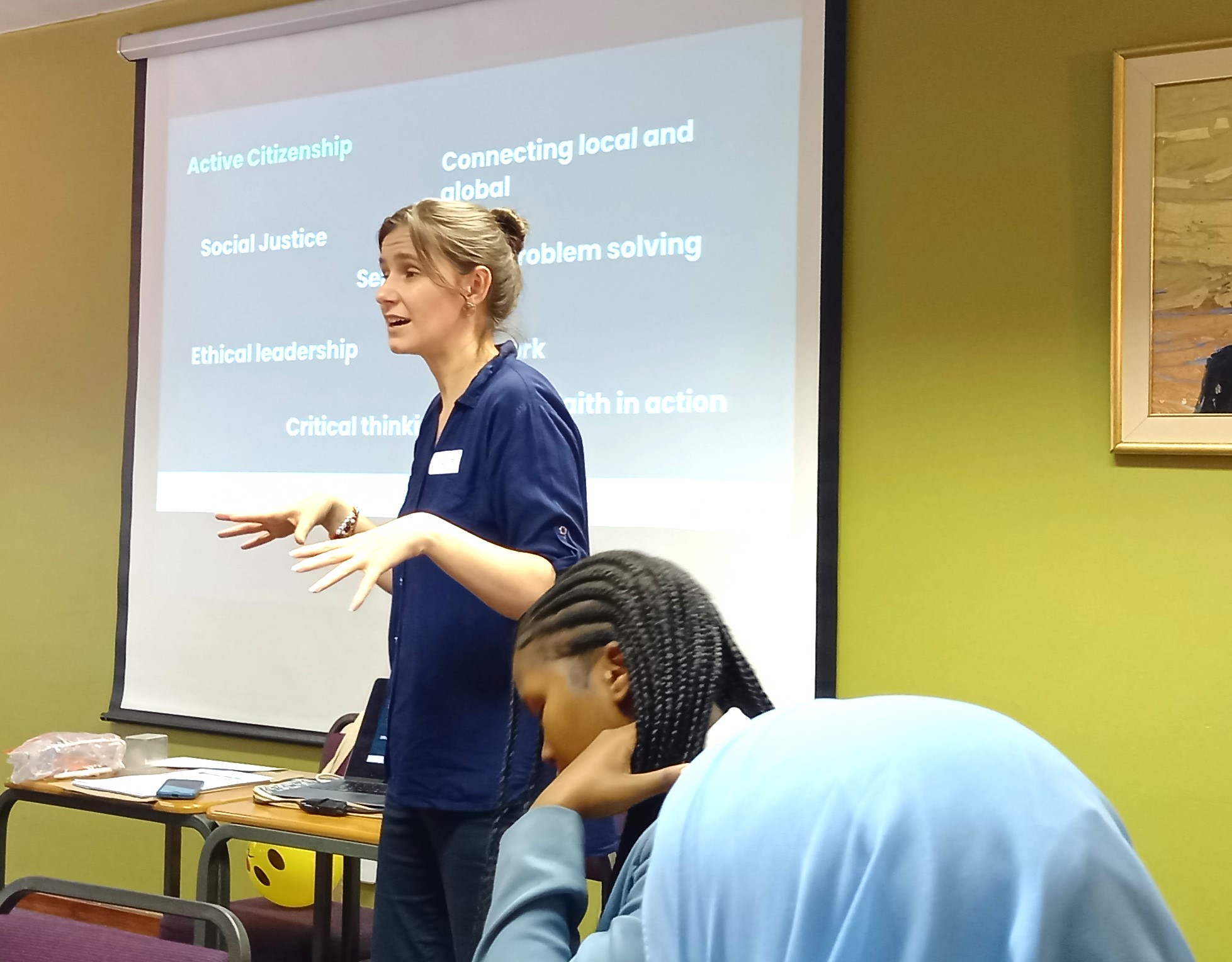 The session, (ed: run by the author Sarah Oliver) titled “Local Eyes, Global Heart,” was designed to show our young leaders that while their work begins in Cape Town, they are part of a massive, global movement for peace.